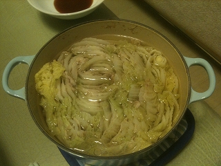 豚肉と白菜の鍋をポパイ君が作ってくれました。