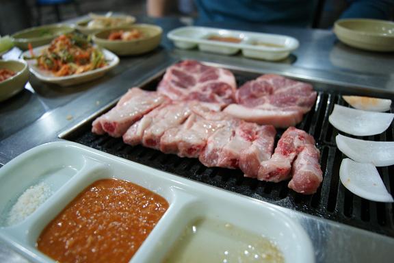 毎回、ポパイ君は汗ダラダラ流しながら辛めのダッカルビをモリモリ食べます(´~`)モグモグ