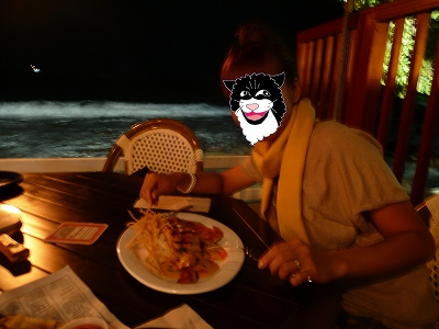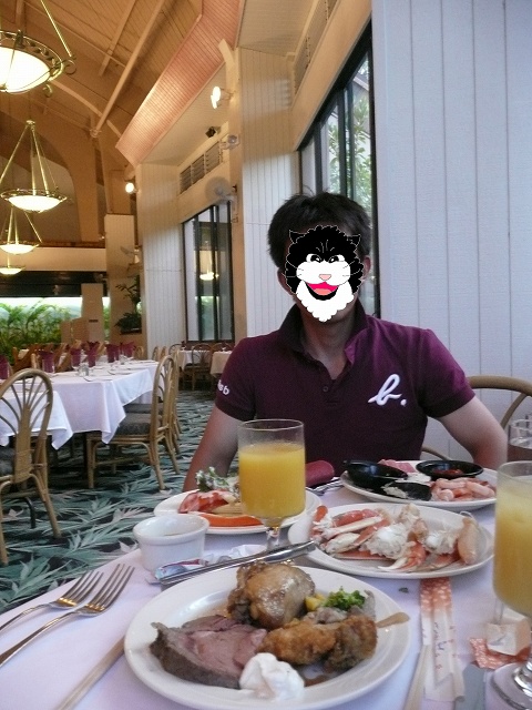 夕食はホテルのレストランでハワイの郷土料理を食べました。