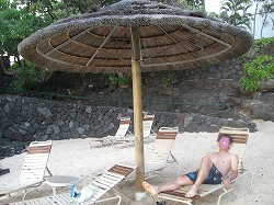 サンセットの中、ホテルのビーチでシュノーケリング。