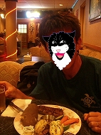 夕方、なんとか無事に着いたので敷地内のバイキングで食事します。